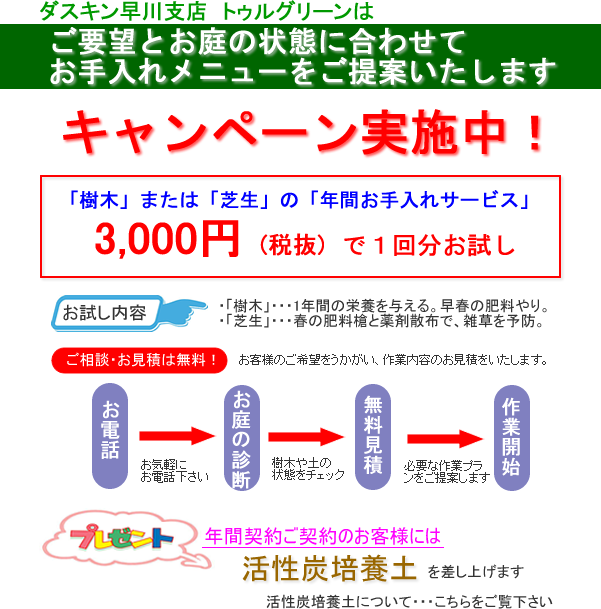 | 樹木を元気にする定期サービス 〜樹木の年間お手入れサービス〜 |